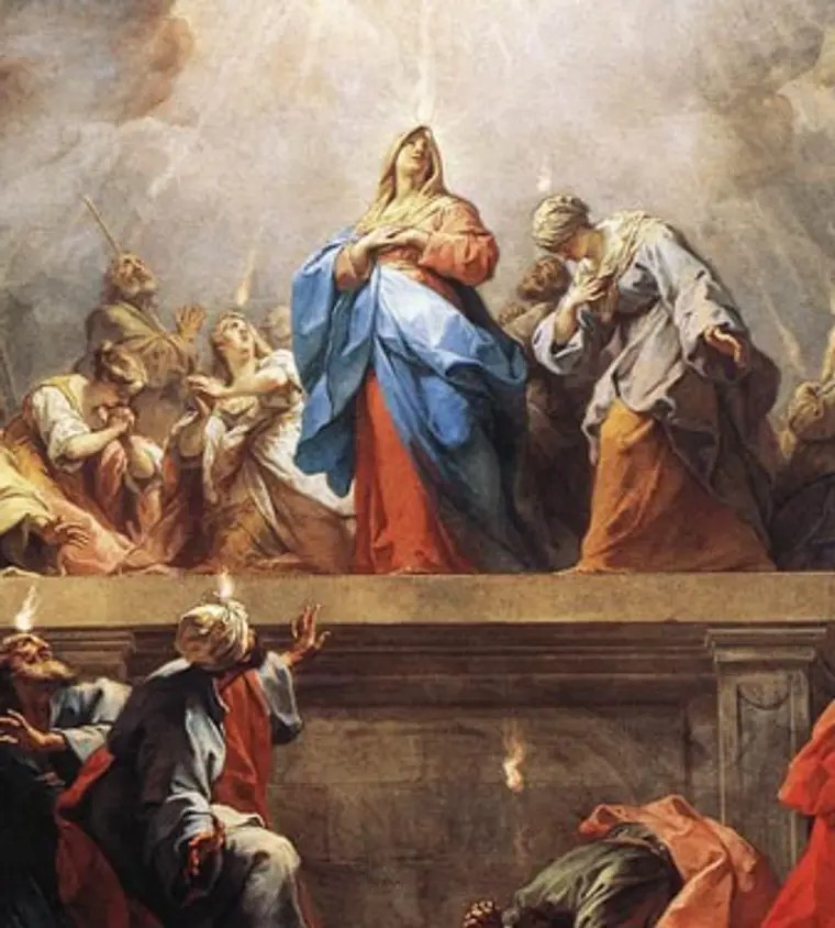 Mentre stava compiendosi il giorno della Pentecoste, si trovavano tutti insieme nello stesso luogo. Venne all'improvviso dal cielo un fragore, quasi un vento che si abbatte impetuoso, e riempì tutta la casa dove stavano. Apparvero loro lingue come di fuoco, che si dividevano, e si posarono su ciascuno di loro, e tutti furono colmati di Spirito Santo e cominciarono a parlare in altre lingue, nel modo in cui lo Spirito dava loro il potere di esprimersi.